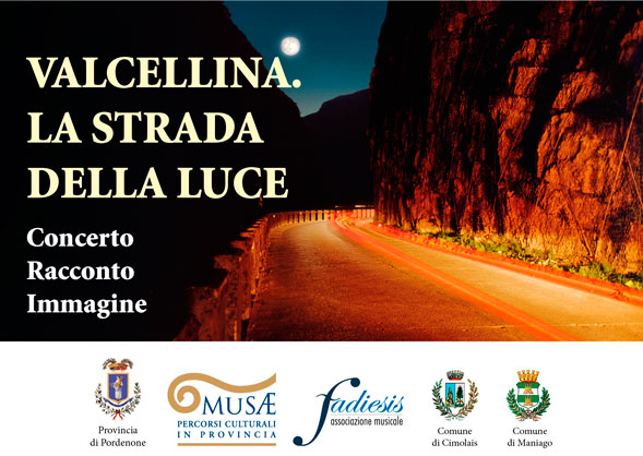 A grande richiesta, dopo il successo nel suo esordio a Barcis, si replica nell’ambito di MUSAE lo spettacolo Valcellina. La strada della luce, concerto-racconto-immagine liberamente tratto dall’omonimo libro.
